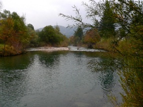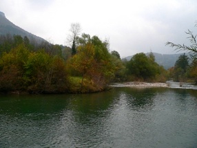 Mit dem Wagen überbrückten wir die Flusskilometer, an denen keine fangträchtigen Huchenstellen zu erwarten waren - und zwar auf beiden Seiten, der kroatischen wie der slowenischen. Manchmal waren große, leicht zu befischende Gumpen dabei. Aber auch hier tat sich aller Bemühungen und Hoffnungen zum Trotz leider nichts.