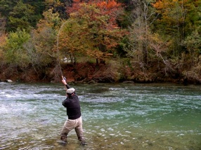 Am Nachmittag brach die Sonne durch die Wolken und liess den Fluss in den herrlichsten Herbstfarben erstrahlen. Obwohl es unsere Fangaussichten weiter sinken liess, freuten wir uns dennoch an dem herrlichen Farbenspiel, das uns die herbstliche Flusslandschaft jetzt zu bieten hatte.